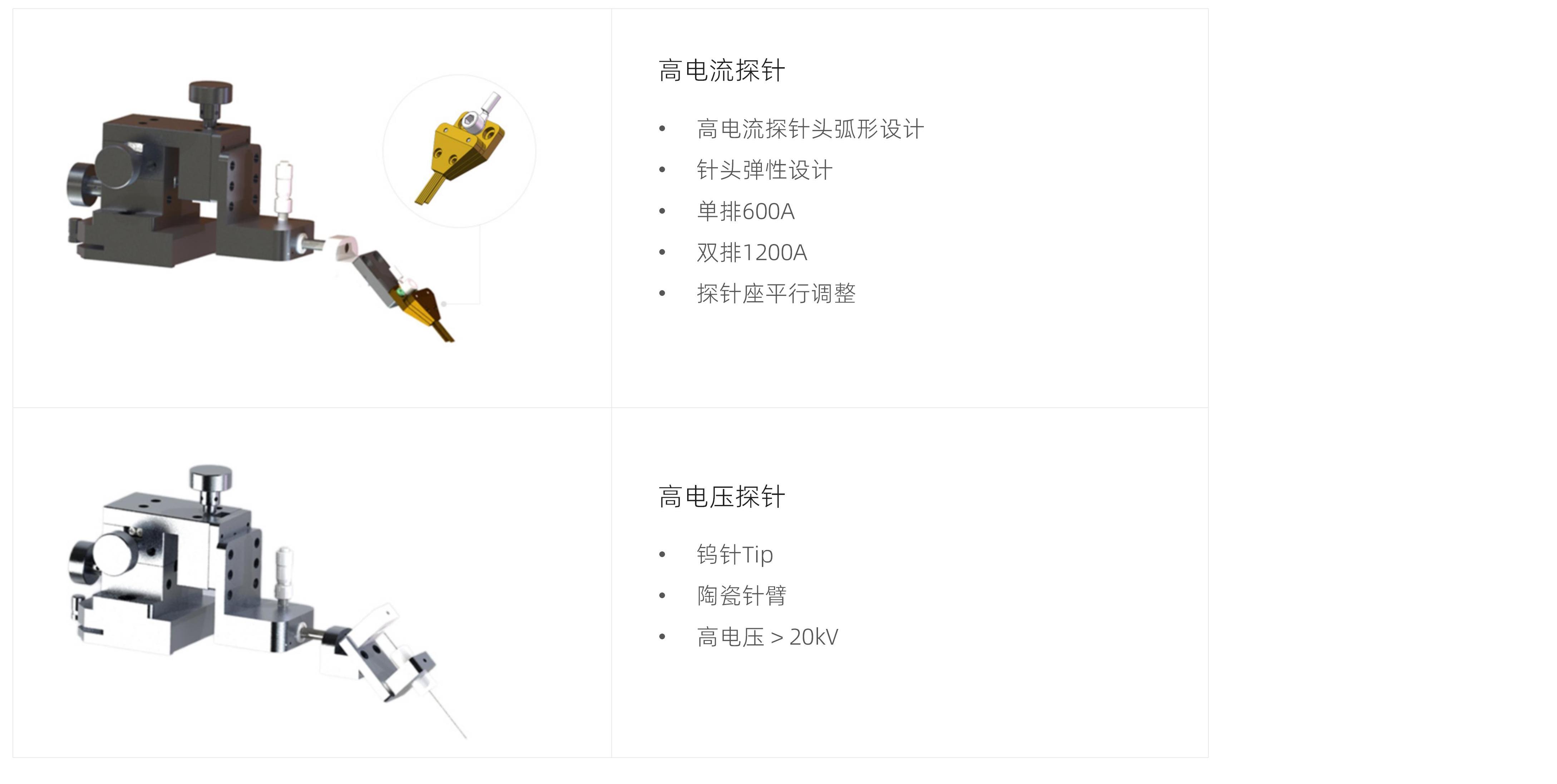 WAT-226高功率晶圆测试系统采用密闭腔体形式,将运动构件、制热构件、制冷构件以及测试使用的晶圆卡盘、探针台、探针臂等部件集中在密闭腔体中,构建安全、稳定的功率器件晶圆级测试环境,满足高温、低温、高压、高流等极端条件的安全测试要求,保护器件不被氧化、结露、结霜、电弧击穿等物理破坏及污染。