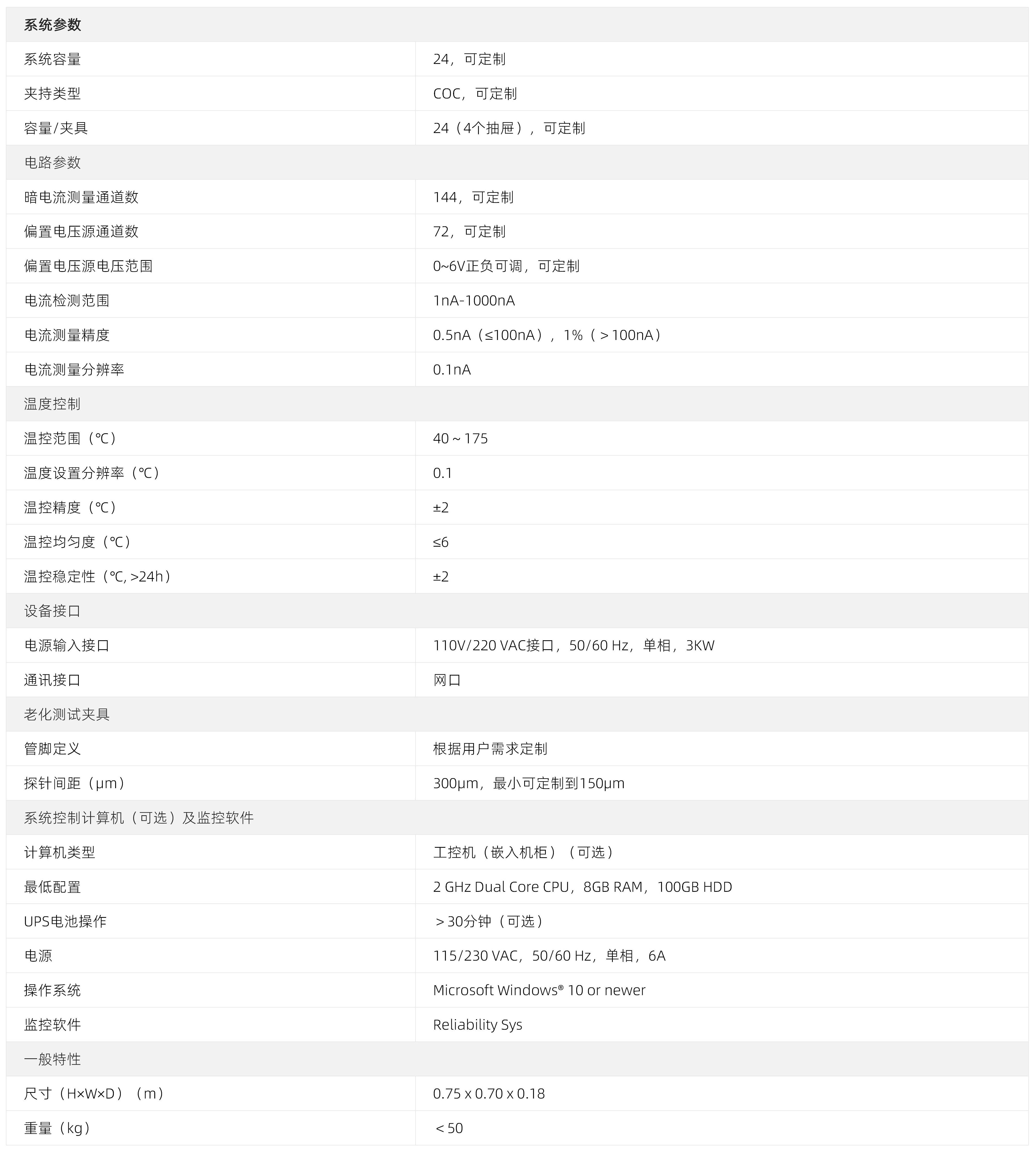 CBT-C090A老化测试系统加电方式独特,根据客户的芯片尺寸和焊盘信息,夹具及芯片加电可以采用探针加电设计,通过PCB走线和连接器连接到电源。老化夹具采用陶瓷片控温,每个夹具加电和控温独立可控。 CBT-C090A老化测试系统设计非常有弹性,可提供多路恒压源,能够支持nA级电流测试,电流检测值可以通过通信接口用于在线监控。同时,该产品兼容性强,可满足客户定制需求。