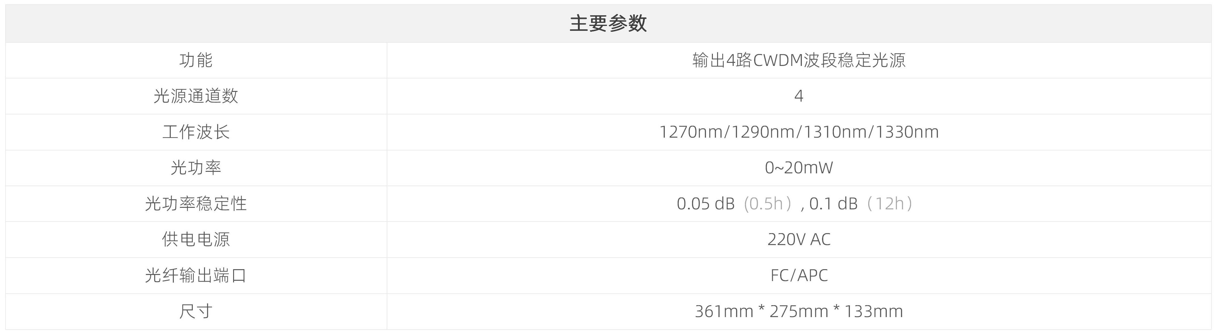 OSM-4200是一款可以输出4路CWDM波段的稳定光源,输出波长分别为1270nm、1290nm、1310nm和1330nm。该设备采用DFB激光器,结合专业的激光器驱动电路和TEC控制电路,保证激光器安全可靠地工作,设备稳定性好,输出光功率较大,操作简单,特别适合做CWDM波段的光源。